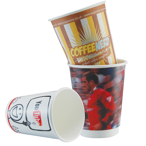 Double wall printed paper cups feature an extra layer on the outside of a heavy weight paperboard for extra insulation. With a full colour no limitations wrap around print as standard for maximum brand impact. Perfect for use in coffee shops and vending machines.